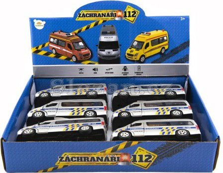 Auto policie záchranáři kov/plast 15cm na baterie se světlem se zvukem na zpětné natažení