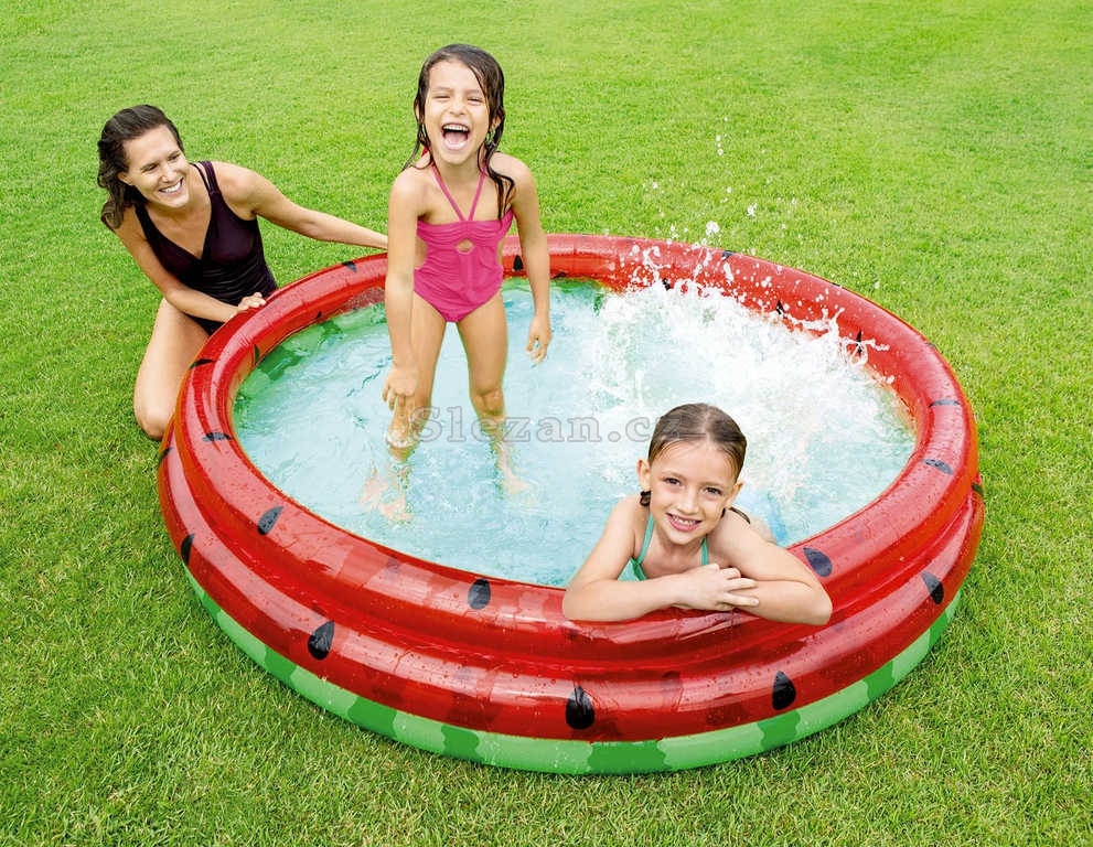 Dětský nafukovací kulatý bazén v reálných barvách melounu, pro menší děti.