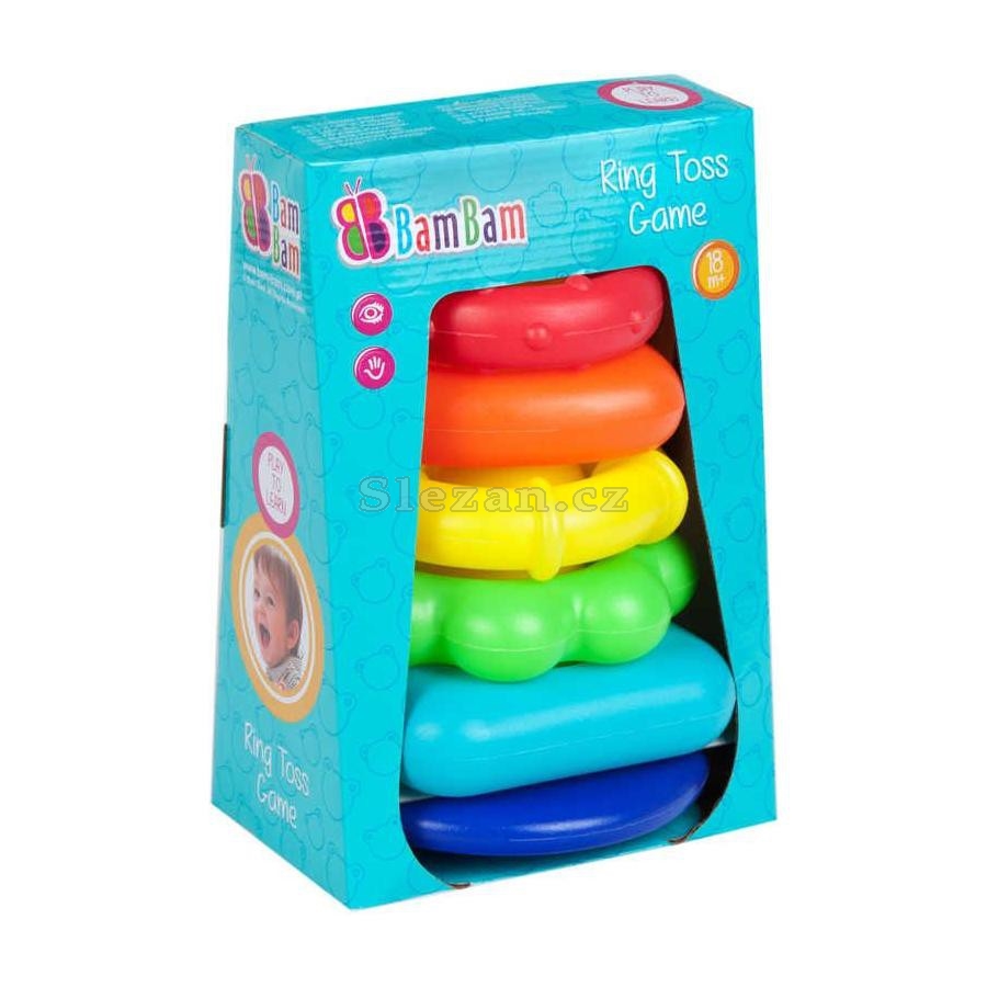 Tato pyramida je tvořena z několika veselých kroužků, které děti vrství na sebe a přitom si rozvíjí a procvičují motoriku a schopnosti kombinování. Skládačka z pěti lehkých barevných kroužků zavede