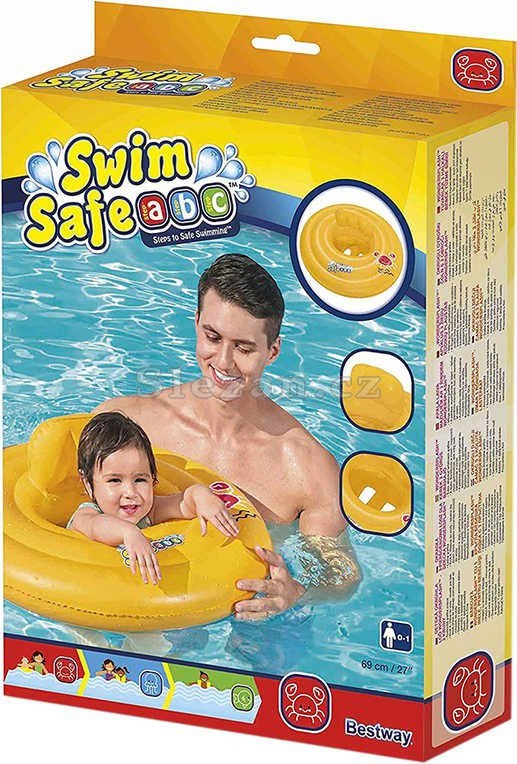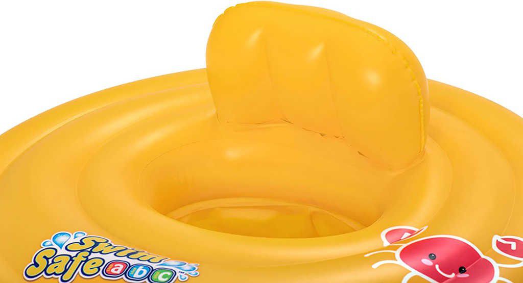 Nafukovací kruh Baby seat patří do kategorie A - plavecké pomůcky pro nejmenší. Vnitřní výsek kruhu má sedátko, které jistí dítě tak, aby nemohlo propadnout dolů. V zadní části je opěrka na hlavičku. Barva kruhu žlutá-celobarevná. Kruh má 3 vzduchové komory.