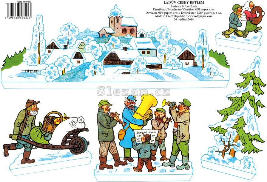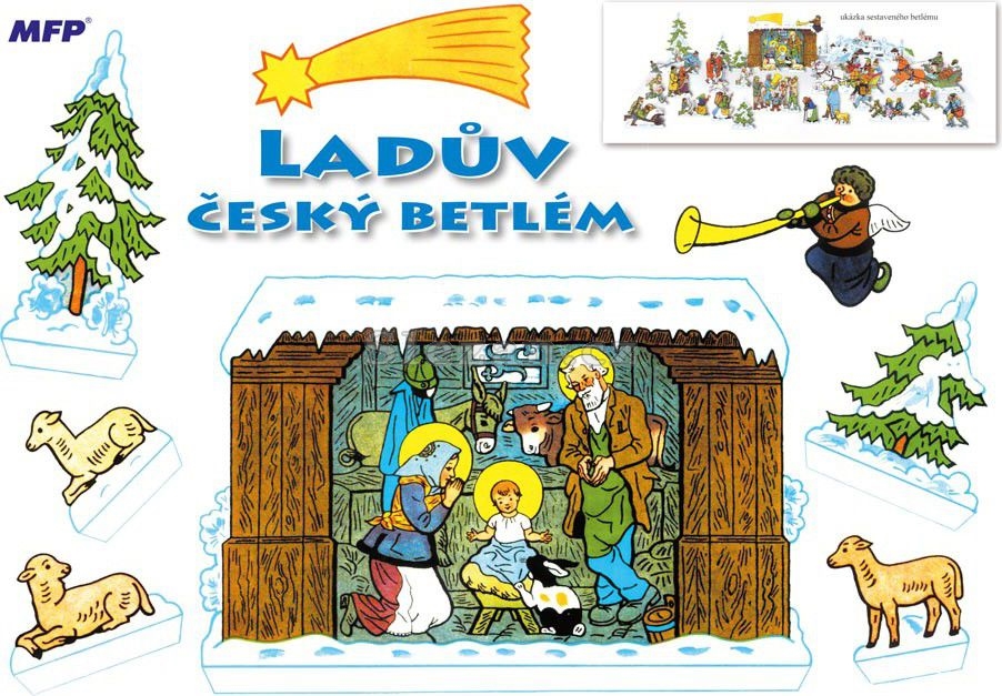 Betlém - Ladův český papírový betlém - Vystřihněte si a sestavte Ladův tradiční český betlém. K sestavení potřebujete jen nůžky a lepidlo na papír. Tuto jednoduchou vystřihovánku zvládnou i děti. Rozměr balení: A4 Počet stránek: 4 Uvedená cena je za 1 ks.