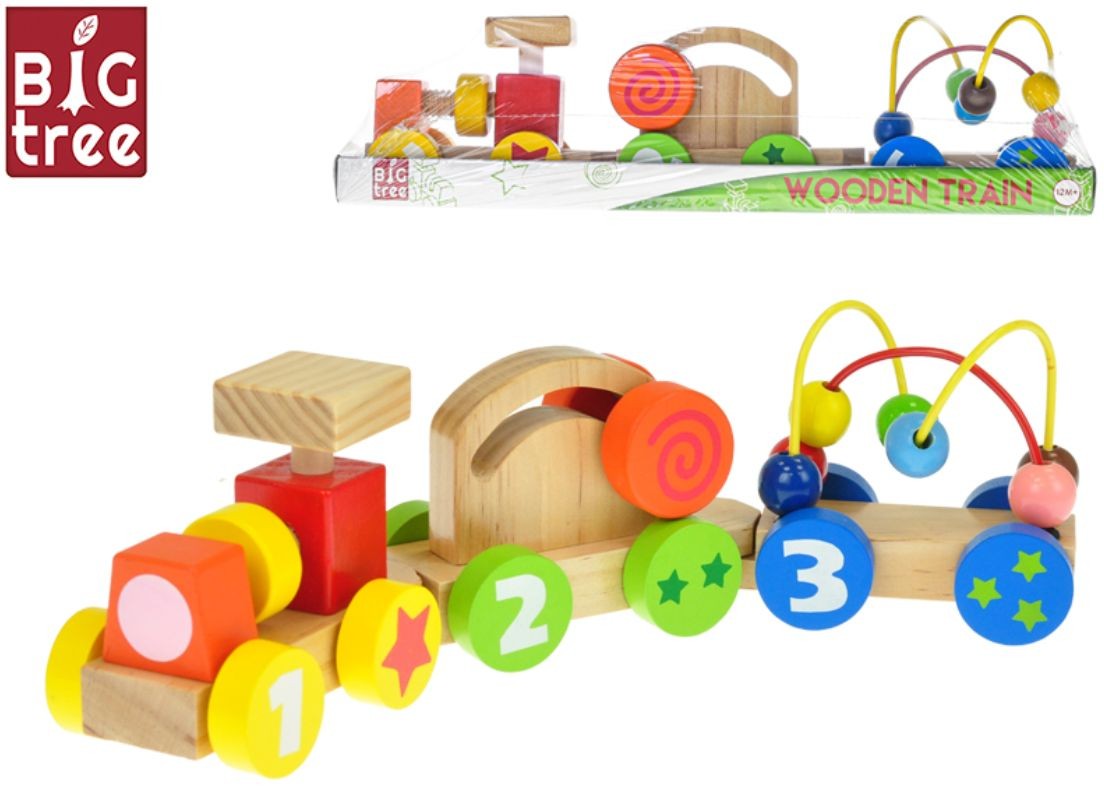 Big Tree vláček s vagónky 33cm, dřevěný