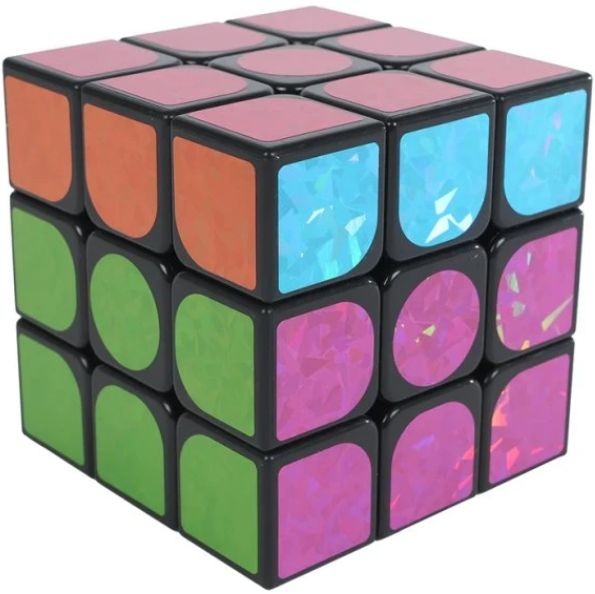 Hlavolam (Rubikova) magická kostka metalická třpytivá.