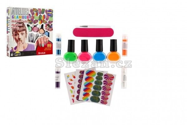 Vytvoř si skvělé brokátové nehty, které můžeš měnit podle nálady. Technické údaje: Sada obsahuje nálepky na nehty, 4 brokátové barvy, 4 barvy laku, mini nálepky na nehty, pilník, štětec a návod (celkem 89 ks). Rozměr balení: 23 x 23 x 5 cm Vhodné pro děti od 6 let Obsah balení: Brokátové nehty plast/barvy sada na nehty 89ks v krabičce 23x23x5cm Pokud není uvedeno jinak, cena se vztahuje na 1 ks produktu. Konkrétní barvu nebo druh výrobku není možné z technických důvodů zvolit, objednávce bude přidělena náhodná varianta dle skladových možností.