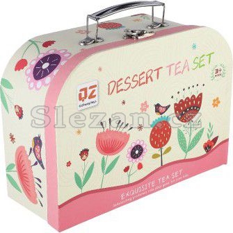 Souprava obsahuje konvičku, 4ks šálků, 4ks podšálků, 4ks talířků a podnos.