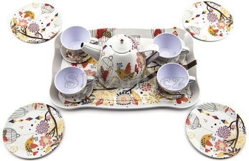 Čajová sada nádobí plechové 15ks v krabici 32x21x10cm
