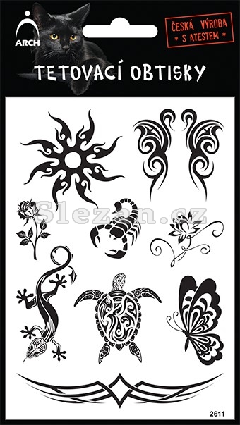 Černé tetovací obtisky - slunce 10x17cm 1arch