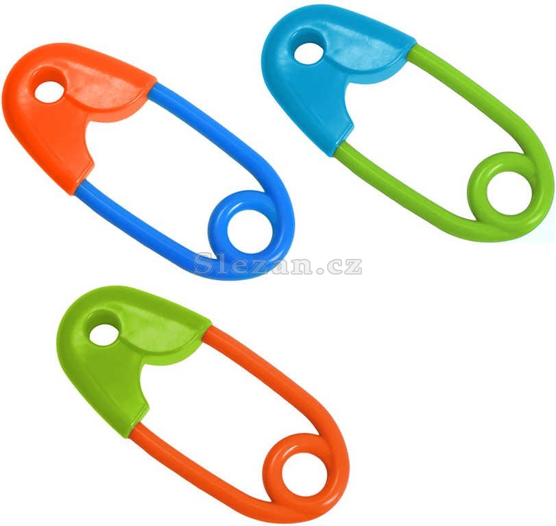 Bezpečné barevné dětské plastové chrastítko z plastu pro nejmenší děti, ve třech variantách mixu barev, ve tvaru sponky