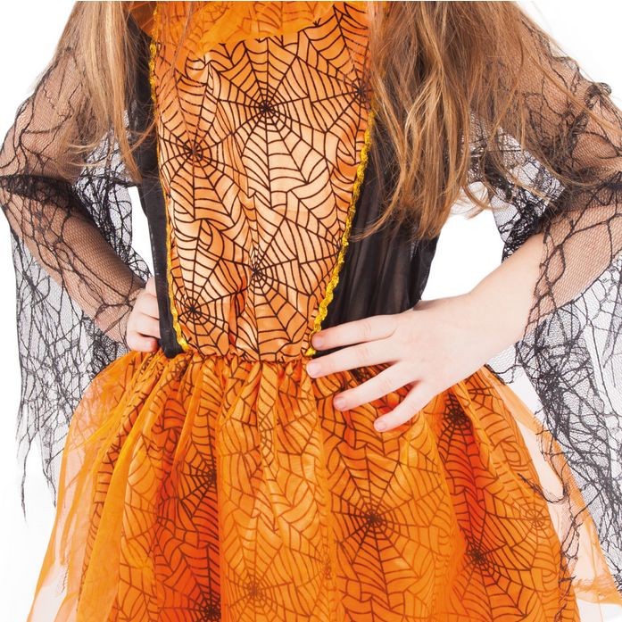 - Šaty jsou dekorovány pavučinkou.