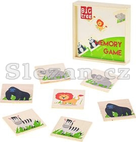 Oblíbená dětská hra pexeso, s obrázky zvířátek, v dřevěném provedení, v praktickém, uzavíratelném dřevěném boxu.