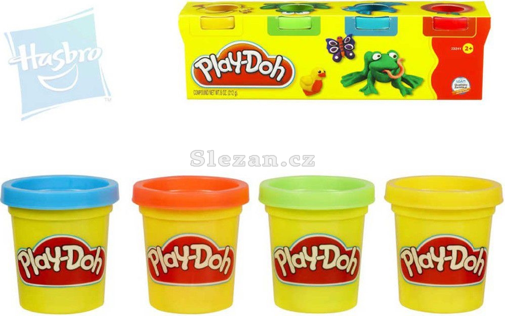Sada 4 kelímků s Play-Doh modelínou v základních barvách. Změnte šedý den v barevnou a kreativní hru! Otevřete tyto čtyři mini kelímky PLAY-DOH a popusťte uzdu své představivosti. Zkuste míchat, sladit barvy a pak formovat, tvarovat, vytlačit a přivést vaše výtvory k životu!
