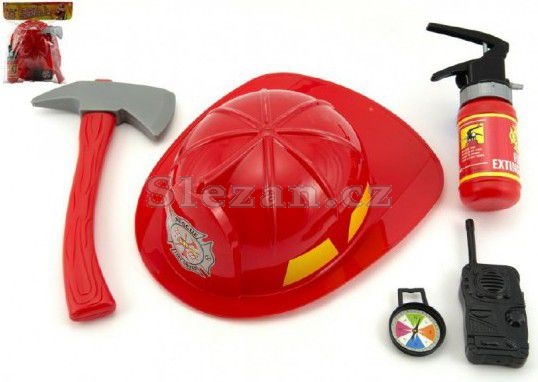 Balení plastového hasičského nářadí obsahuje helmu, hasicí přístroj, vysílačku a další příslušenství, se kterým se dítě hravě vžije do role požárníka. Vhodné od 3 let.
