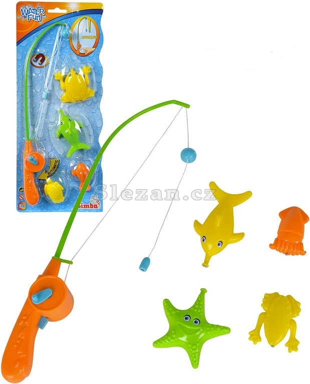 Prut s magnetem a automatickým uvolněním šňůry při stisknutí tlačítka, v sadě se čtyřmi mořskými zvířátky k ulovení, pro všechny malé rybáře.