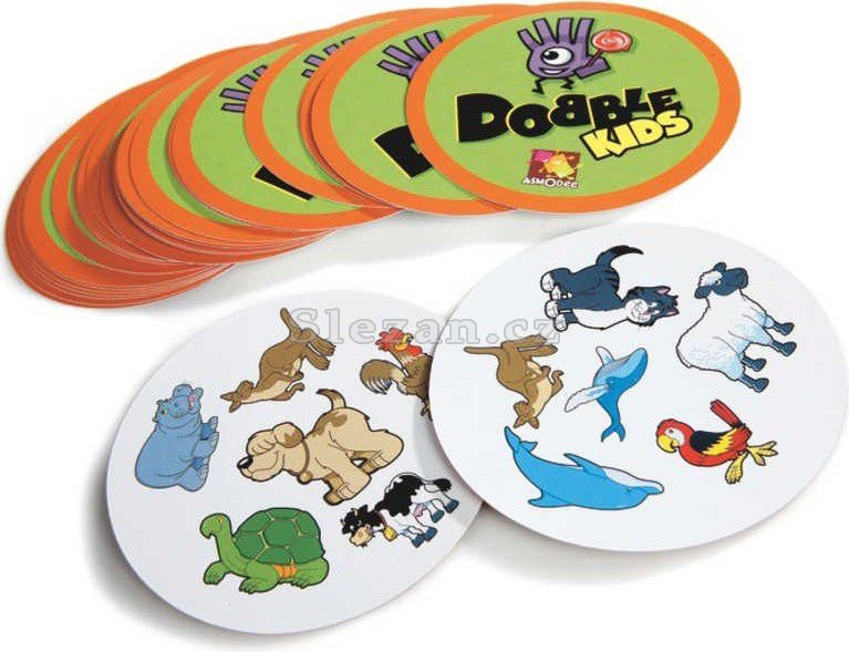 Nová dětská verze populární a oceněné hry Dobble - Dobble KIDS (Zvířátka) zaměřená na rychlost, postřeh, reflexy! Nyní ještě jednodušší obrázky zvířátek, snadno srozumitelné a zapamatovatelné pro menší děti. Hra je dětem uzpůsobena především graficky - na kartách jsou pouze zvířátka a nikoliv symboly, které děti někdy jen obtížně pojmenovávají; navíc obsahuje dvě speciální dětské herní varianty.
