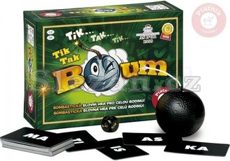 Rychlá slovní společenská hra Tick Tak Bum! podporuje kreativitu, spontánnost a slovní zásobu. Společenská hra TIK TAK BUM! dokáže rozjet pořádný večírek. V ruce vám tiká bomba se speciálním časovačem, který způsobí, že bomba exploduje vždy v jiném intervale v rozmezí 10 - 60 vteřin. Nikdo tedy neví, jak dlouho bomba bude tikat, než vybuchne. Hráči hledají a vymýšlejí slova, obsahující dané slabiky, a přitom si přehazují tikající bombu. Komu bomba vybuchne v ruce, ten prohrává. Každý se chce co nejdříve zbavit tikající věci, než vybuchne. Rozhoduje rychlá reakce a správné slovo ve správnou chvíli!