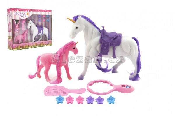 Popis Jednorožec kůň česací se sedlem s hříbětem