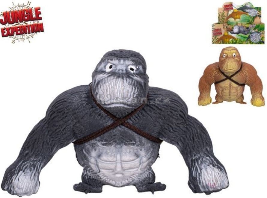 - Tato super strečová gorila z kolekce Jungle Expedition měří 10 cm a dá se natahovat, kroutit i mačkat a vždy se vrátí do původního tvaru.