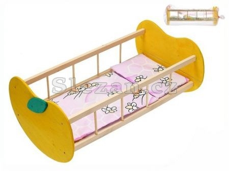Dřevěná kolébka pro panenky o rozměrech 51x30x19cm nesmí chybět žádné malé mamince. Součástí je i polštářek a příkrývka.