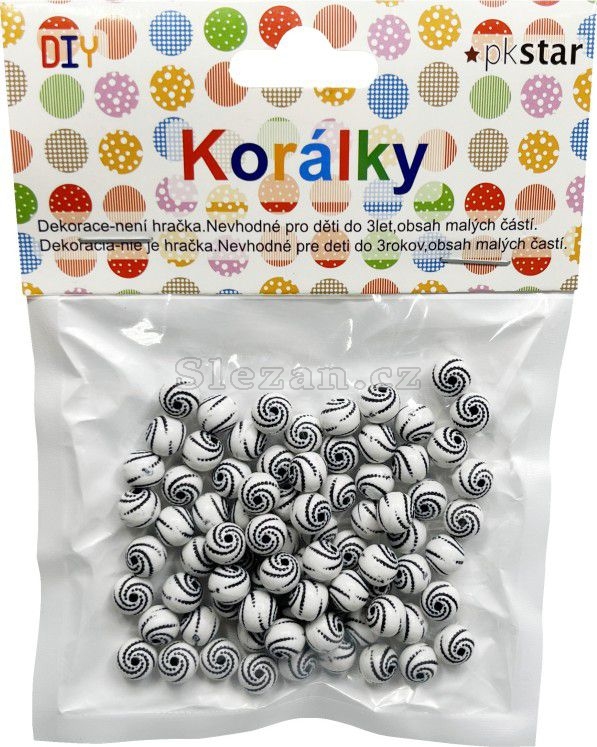 Popis Korálky plastové černo-bílé spirálky 8 mm