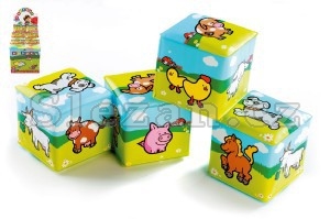 Měkká kostka s motivy zvířátek, stimuluje rozvoj smyslů dítěte.