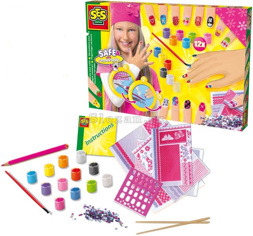 - Díky 12ti barvám laku na nehty, ozdobným kamínkům, papírovým vzorům na nehty a šikovným nástrojům bude každý nehet vypadat jinak.