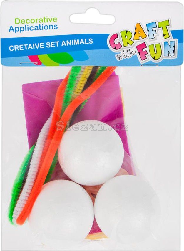 Kreativní sada od Craft with Fun má pozitivní vliv na rozvoj manuálních dovedností, kreativity a představivosti a poskytuje spoustu skvělé zábavy spojené s učením. Tyto produkty používejte v kombinaci s dalšími doplňky ze série Craft With Fun nebo s dalšími sadami ze sady Creative Set na tvoření zvířátek ze série polystyrenových kuliček. Sada obsahuje 3 polystyrenové kuličky, 6 potažených drátků, barevný hedvábný papír a prvky pro zdobení zvířátek. Všechny prvky vyrobené z polystyrenu, plsti a papíru. Určeno pro děti od 3 let. Baleno v sáčku s ramínkem. Rozměry balení: šířka x výška cm: 14x21.