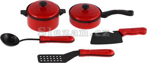Sada kuchyňského nádobí, které každé dítko potřebuje mít v kuchyňce k přípravě pokrmů pro celou rodinu.