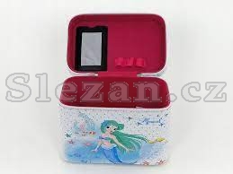 Praktický kosmetický kufřík pro děti, uzavíratelný na zip. Tento kompaktní, velmi funkční kufřík, je skvělým elegantním doplňkem. Ergonomické madlo dobře padne do ruky. Originálním vzorem jistě zaujme vaše okolí (srdíčka - imitace drahokamu). Interiér tvoří jedna hlavní komora. Zrcátko ve víku. Baleno v sáčku.Kufřík ocení každá malá parádnice na své drobnou kosmetiku na doma nebo na dovolenou. Oblíbený je také mezi holčičkami k uložení jejich nepostradatelných hraček.Rozměry výrobku (š v h): 23 x 16,5 x 15cmMateriál: tvrdý karton, plast, textilCena je uvedena za 1 kus výrobkuVýrobek je vhodný pro děti od 3 let