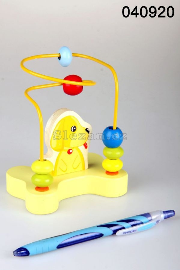 Dětský labyrint skvěle rozvíjí smyslové vnímání, jemnou motoriku i logické myšlení těch nejmenších dětí. Barevné korálky putují sem a tam z jedné strany drátku na druhou a tím vytváří skvělou zábavu pro malé objevitele. Na vše přitom dohlíží pes uprostřed labyrintu.