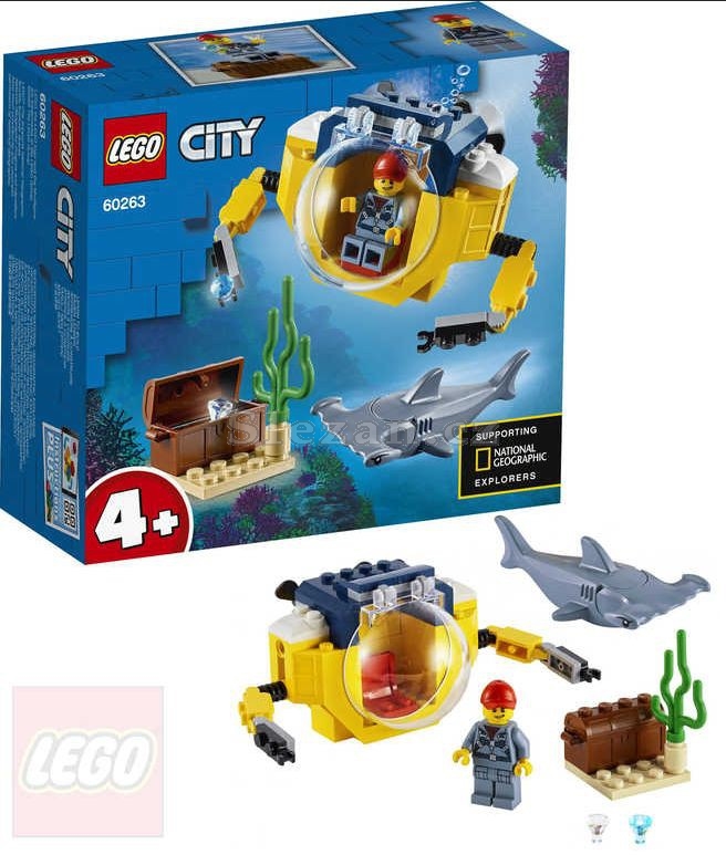 Sada LEGO City Oceánská mini ponorka dětem umožní ponořit se do kreativního hraní. Součástí stavebnice je ponorka s kulatým kokpitem a průzkumnými rameny, pirátská truhla s drahokamy a parádní figurka
