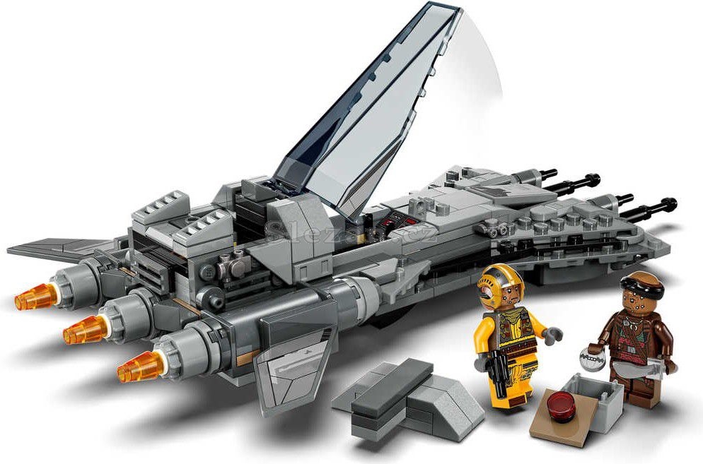 Děti si užijí spoustu zábavy s kostkovým modelem Pirátské stíhačky, která se poprvé objevila ve 3. řadě seriálu Star Wars: The Mandalorian. Součástí sestavitelné stíhačky je otevíratelný kokpit pro minifigurku, 2 vystřelovače a nákladní prostor na tepelný detonátor. Nechybí ani 2 nové minifigurky, které vyjdou v květnu 2023 a dodávají stavebnici akční prvky – pilot stíhačky s blasterovou pistolí a Vane s mečem. Jedinečný dárek pro fanoušky seriálu Star Wars: The Mandalorian od 8 let.
