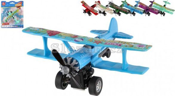 Popis Letadlo dvouplošník kov/plast 10x11cm na zpětné natažení
