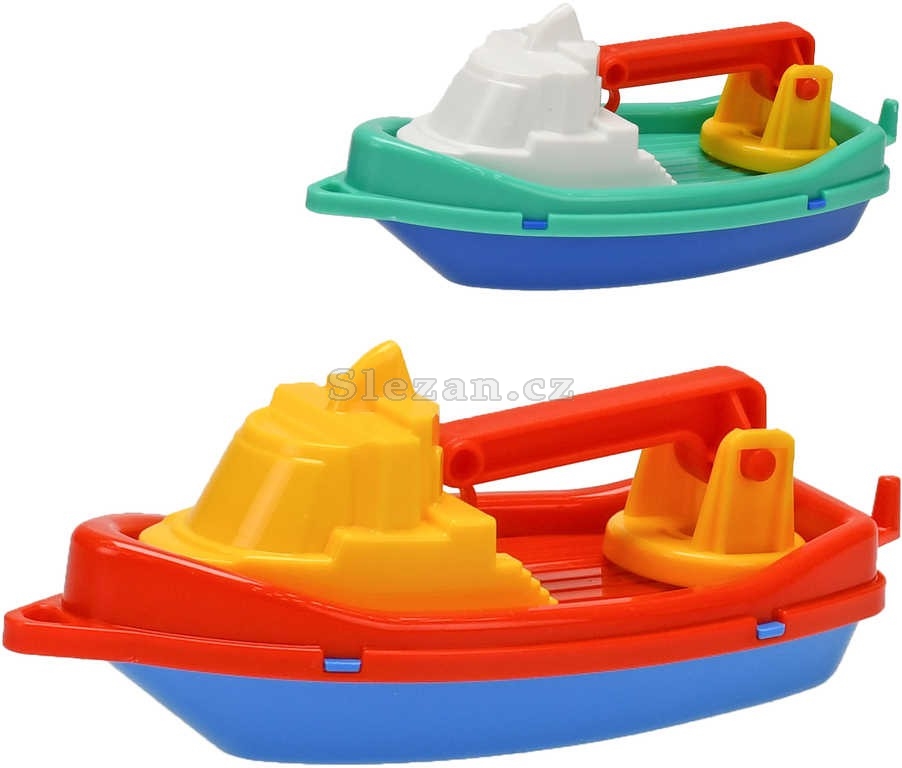 Plastová barevná lodička z plastu, ve dvou barevných variantách, pro nejmenší děti, na hraní do vany či bazénku.