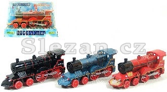 Lokomotiva 15cm kovová PB světlo zvuk 3 barvy vlak na baterie