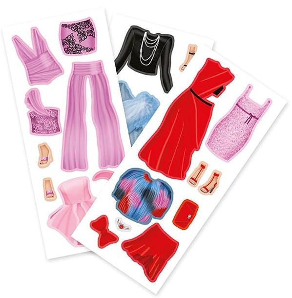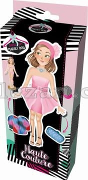 Balení obsahuje oblékací panenku,30 magnetických částí (oblečení, boty, doplňky) a dřevěný podstavec, díky nimž lze vytvořit nespočet módních kreací.