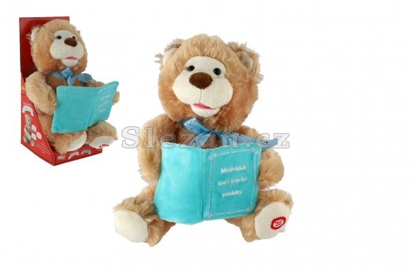 Medvěd vyprávějící pohádky česky mluvící plyš 28cm na baterie v krabici 14x31x18cm 18m