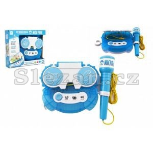 Užijte si domácí karaoke party! Technické údaje: Modrý mikrofon karaoke hraje melodie, do kterých děti zpívají nebo lze připojit mobilní telefon, ze kterého můžete pouštět vlastní hudbu. Mikrofon také svítí. Baterie 3x AA nejsou součástí balení. Rozměry balení 24 x 20 x 6 cm Vhodné pro děti od 3 let Obsah balení: Mikrofon karaoke modrý plast na baterie se světlem v krabici 24x21x5,5cm
