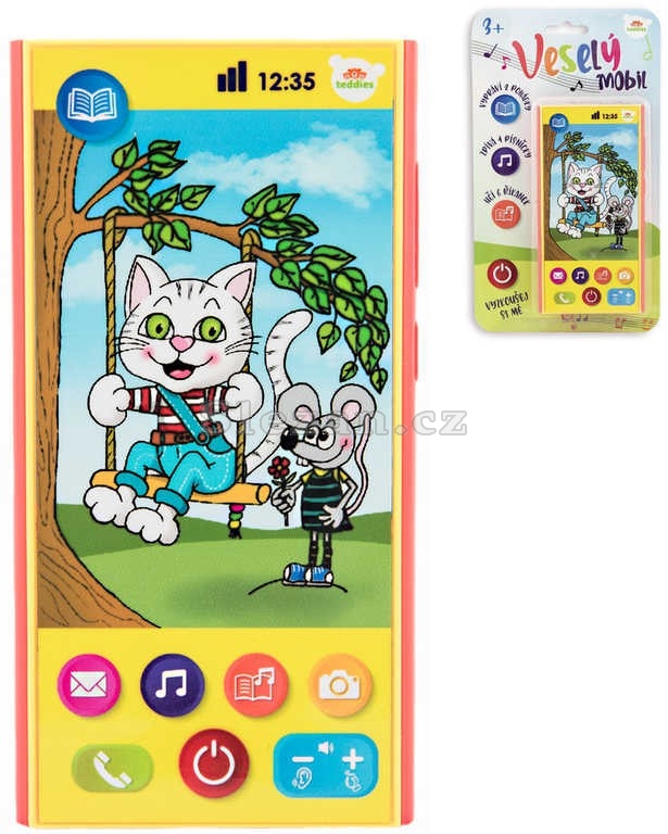 Děti si mohou poslechnout pohádky: O veliké řepě a Pohádku o Budce, zazpívat si písničky: Kočka leze dírou..., Mámo, táto v komoře je myš..., Houpy, houpy... a Utíkej káčo.... a naučit se říkanky: Vařila myšičkakašičku..., Hrálo si koťátko..., Běží myška po světnici..., Dupy, dupy, klapy, klapy..., Naše kočka strakatá..., Včera večer při měsíčku... Na mobilu jsou tlačítka se zvukem vyzvánění, příchozí zprávy a fotoaparátu.