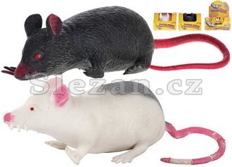 Měkká mačkací antistresová myška z elastického materiálu, ve dvou barevných variantách. Zvířátko lze všemožně mačkat, natahovat a hníst rukama. Baleno v krabičce.
