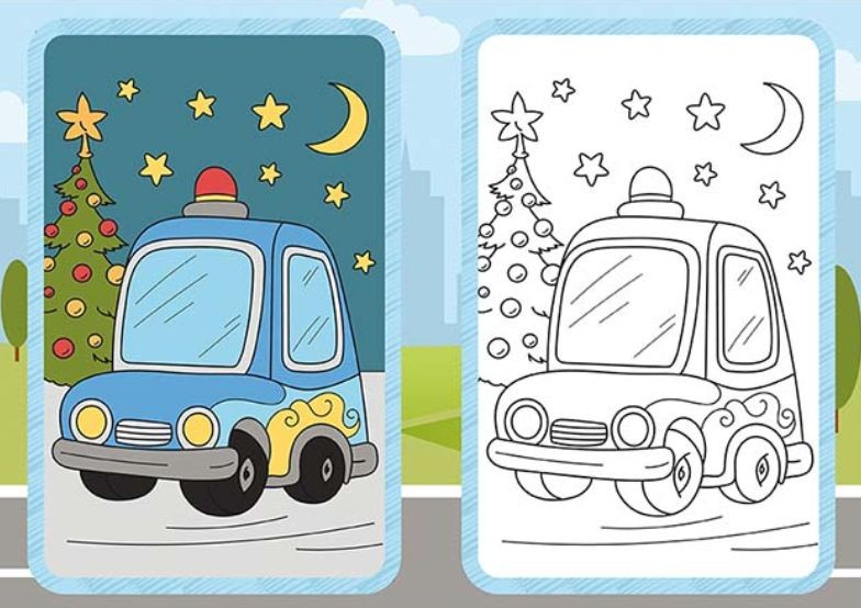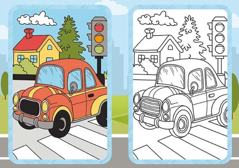 Omalovánky obsahují 9 černobílých obrázků k vybarvení a 9 barevných předloh.