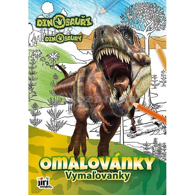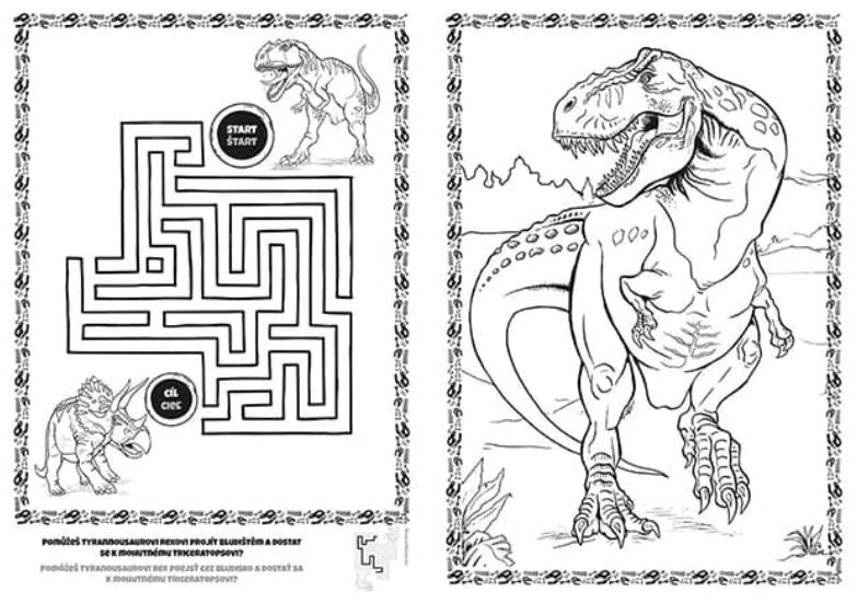 Omalovánky obsahují 16 černobílých stran s obrázky dinosaurů k vybarvení a oblíbenými aktivitami.
