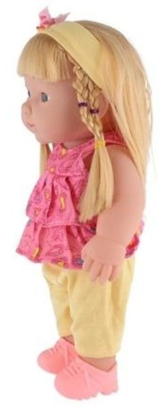 - Tato panenka vydává i zvuky. Pro spuštění zvuku je nutné vyndat pojistku umístěnou ve strojku na zádech panenky.