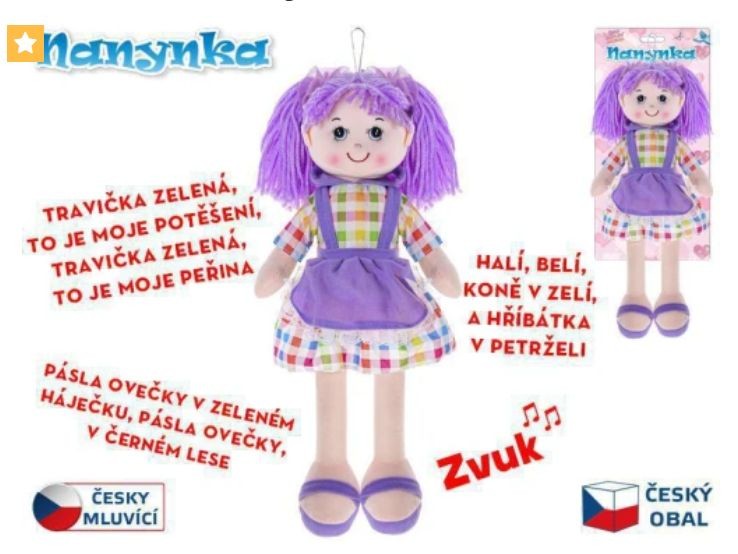 Popis Panenka Nanyka fialová, mluví a zpívá