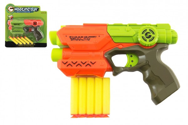 Pistole 21cm na pěnové náboje 5ks plast 2 barvy na kartě