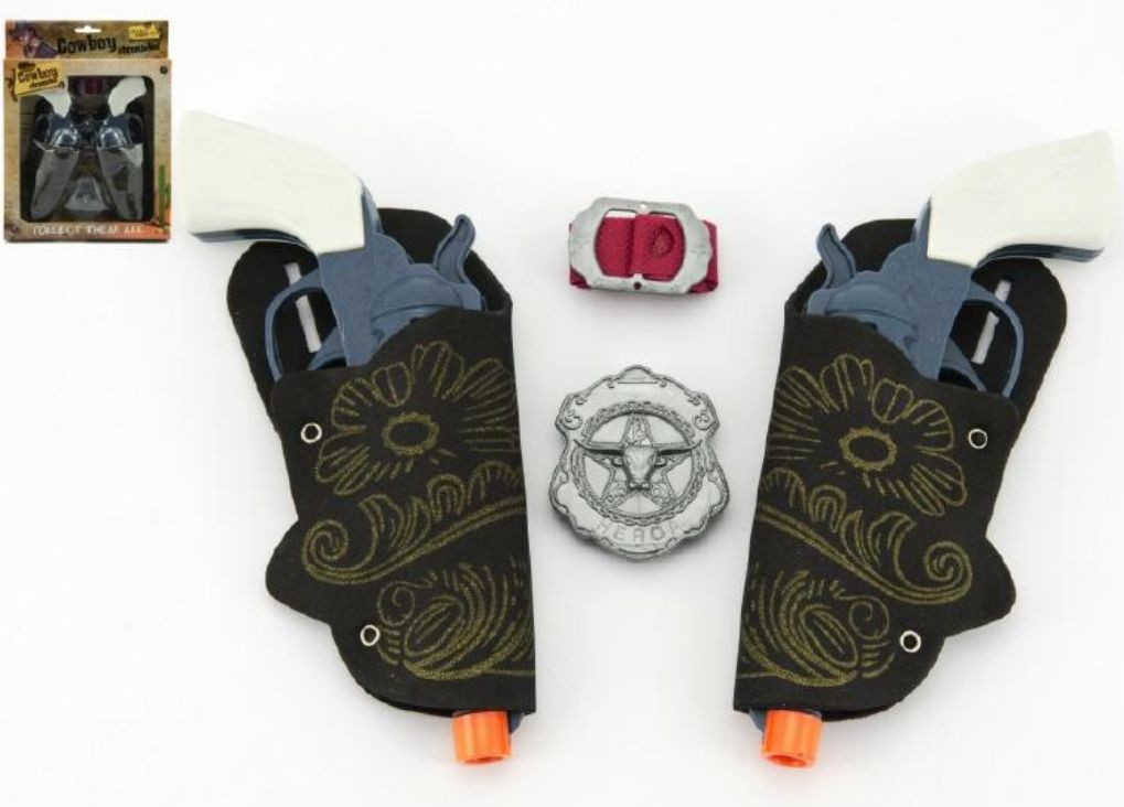 Sada obsahuje: 2 pistole, odznak šerifa a opasek
