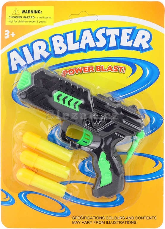 Air Blaster - Plastová dětská pistole v černo-zeleném provedení na lehké, soft náboje, které jsou také součástí balení.
