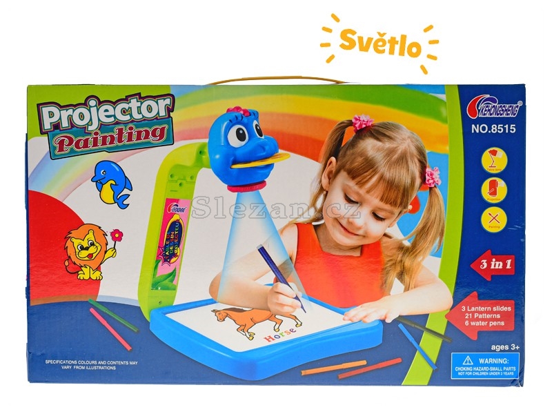 Součástí jsou fixy a mnoho dalších doplňků. Vaše dítko si s tímto projektorem vydrží hrát dlouhé hodiny. Obkreskováním zvířátek nebo jakých koliv tvarů.