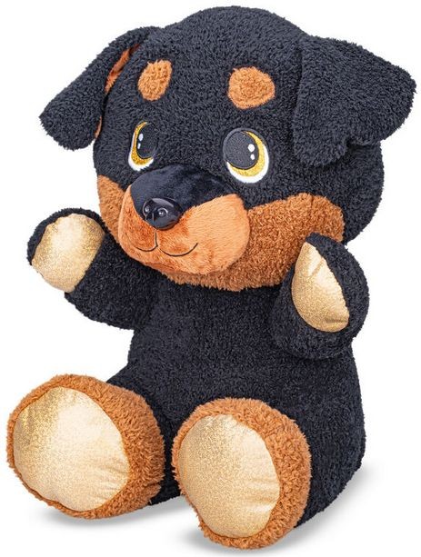 - Plyšový rotvajler je věrně zpracovaný a příjemně měkký na dotek.