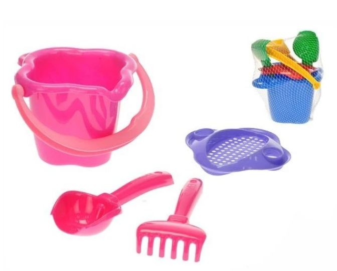 Obsah: kyblík, sítko, lopatka, hrabičky.