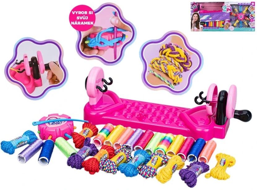 - Sada zahrnuje: pletač pro snadné tvoření a barevné provázky.